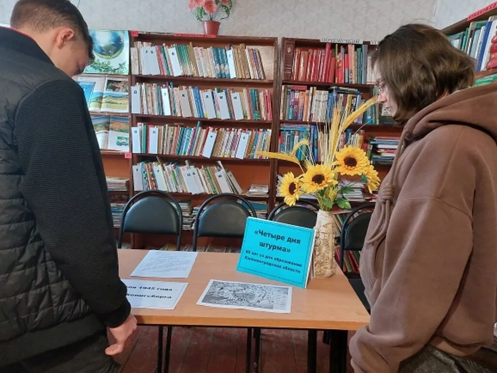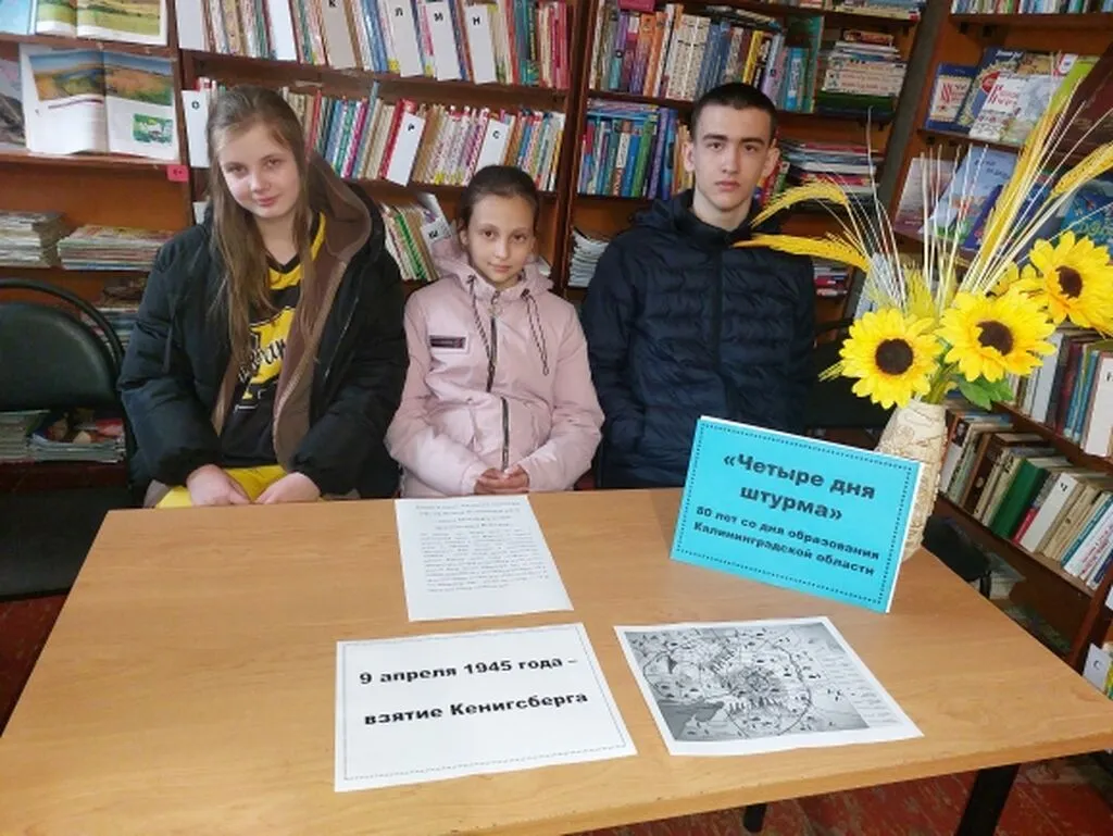 В рамках празднования 80-летия со дня образования Калининградской области в Любимовской сельской библиотеке был проведен патриотический час «Четыре дня штурма». Библиотекарь рассказала пользователям о тяжелых днях штурма Красной Армией считавшегося неприступным города-крепости Кёнигсберга в годы Великой Отечественной войны, что предопределило появление самого западного региона России – Калининградской области.